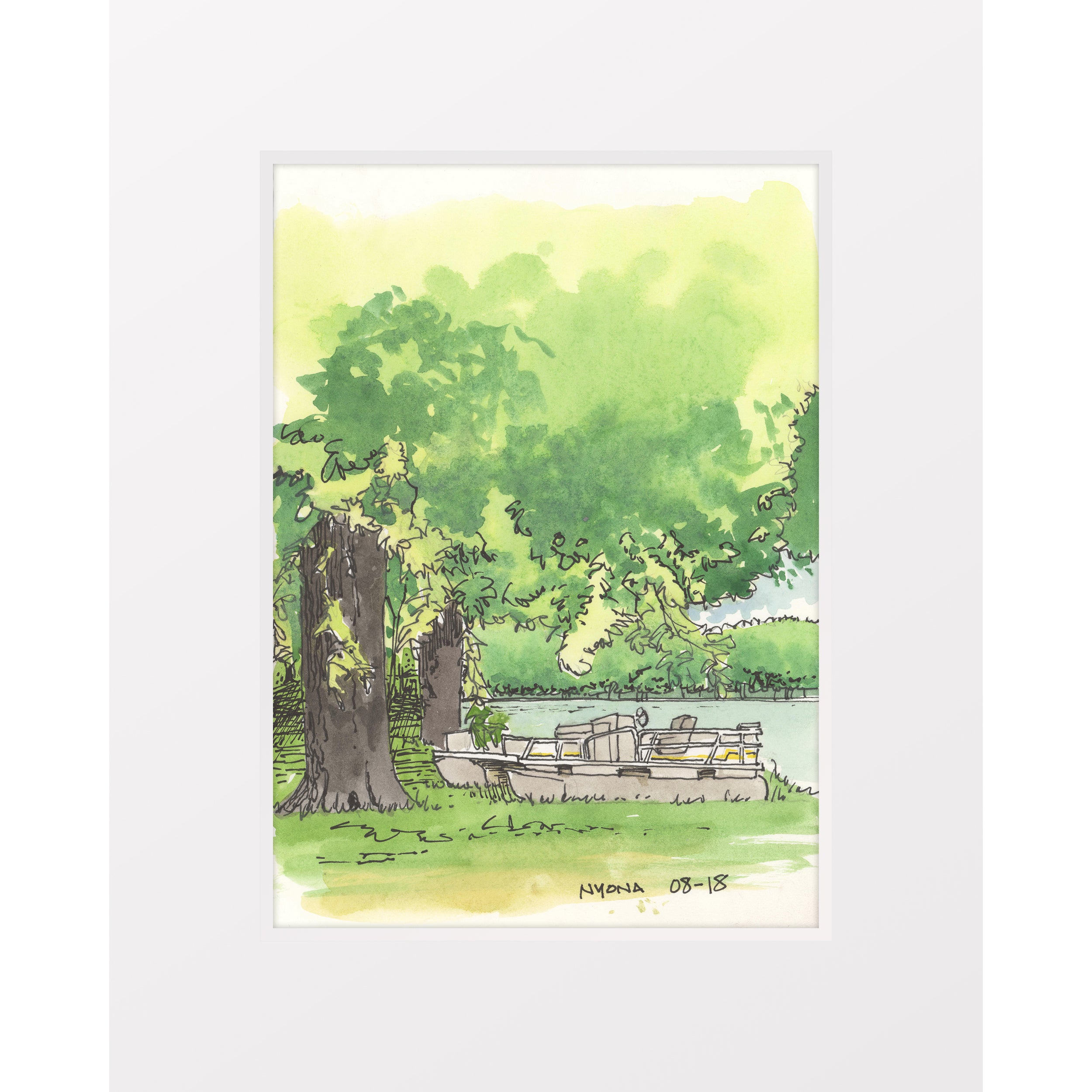 5"x7" print from original ink and watercolor on acid-free watercolor paper. Includes standard 8"x10" acid-free mat, backer, and archival sleeve.