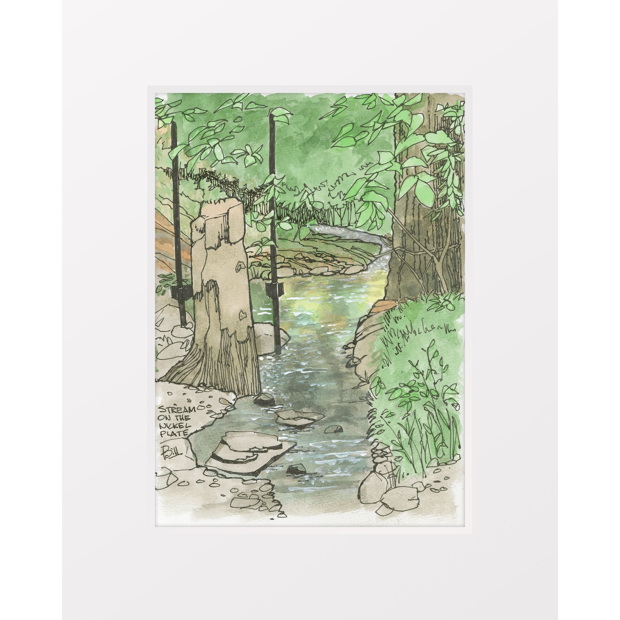 5"x7" print from original ink and watercolor on acid-free watercolor paper. Includes standard 8"x10" acid-free mat, backer, and archival sleeve.